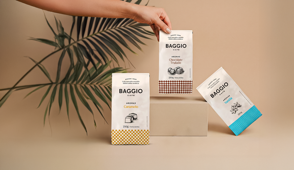 Escolha seus cafés moídos preferidos por um preço fixo e surpreenda com uma caixa Baggio especial.