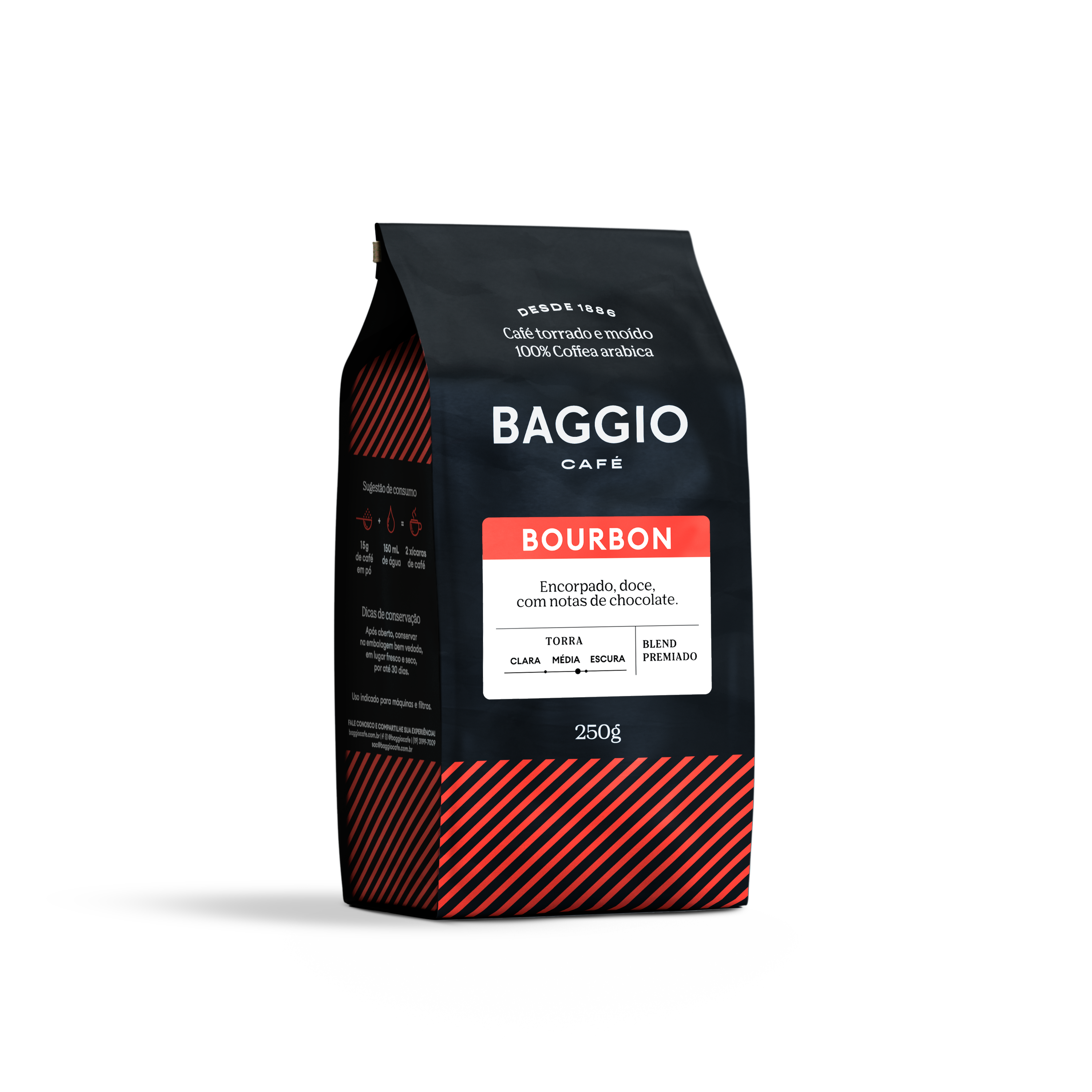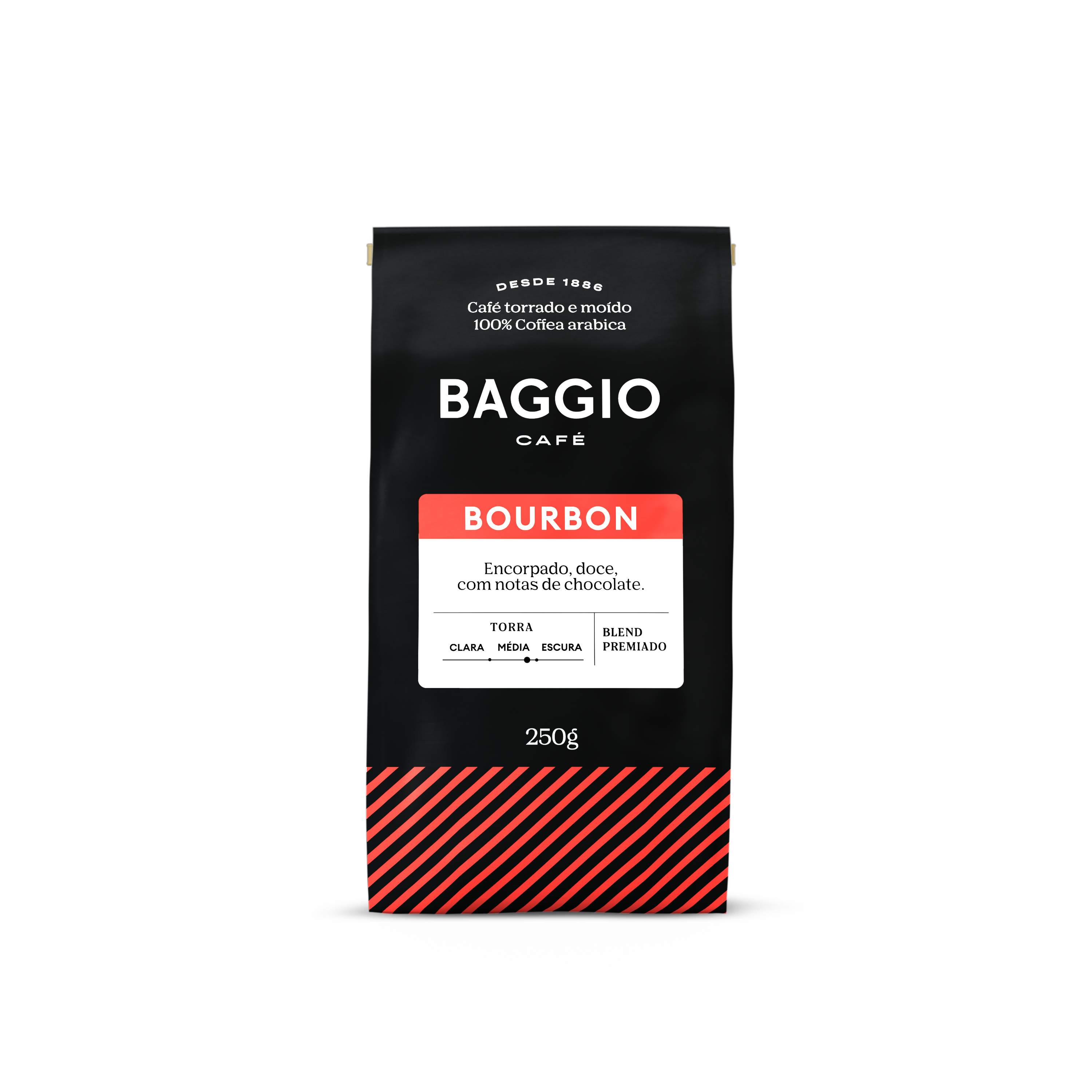 O Baggio Café Especial Bourbon é um café especial artesanal. Torrado artesanalmente, possui um paladar definido, com acidez sutil, para apreciadores desta variedade. Apresenta notas gustativas marcantes, corpo e doçura muito presente.