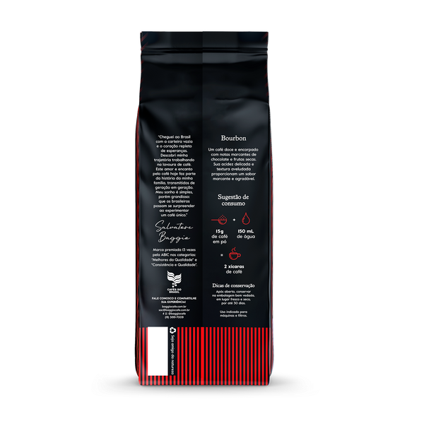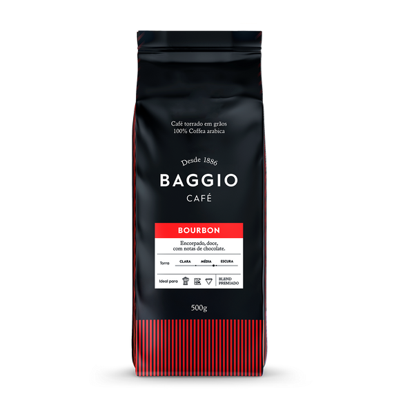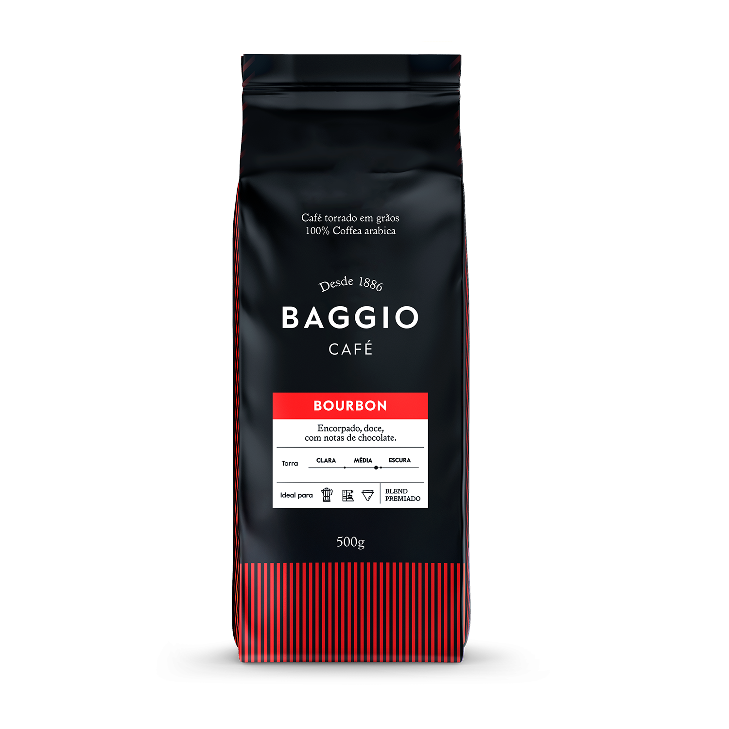 O Baggio Café Especial Bourbon é um café especial artesanal. Torrado artesanalmente, possui um paladar definido, com acidez sutil, para apreciadores desta variedade. Apresenta notas gustativas marcantes, corpo e doçura muito presente.